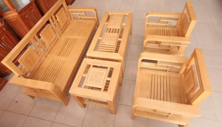 Hầu hết các mẫu bàn ghế gỗ phòng khách nhỏ gọn giá 7 triệu có thể dùng gỗ tự nhiên 100%, các mẫu gỗ phổ biến được sử dụng là gỗ sồi, gỗ hương, gỗ xoan đào. T