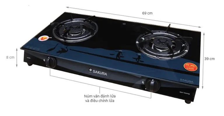 Bếp có màu xanh đen kết hợp với các họa tiết hình bông hoa anh đào mang đến một chiếc bếp thời trang và cá tính. Với mặt bếp bằng kính cường lực sáng bóng, dễ dàng vệ sinh và lau chùi. Với chất liệu bằng đồng thau giúp mang đến tuổi thọ cao và cho ra ngọn lửa xanh.