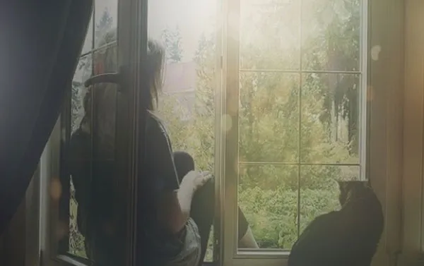 Hình ảnh cô gái buồn ngồi bên cửa sổ