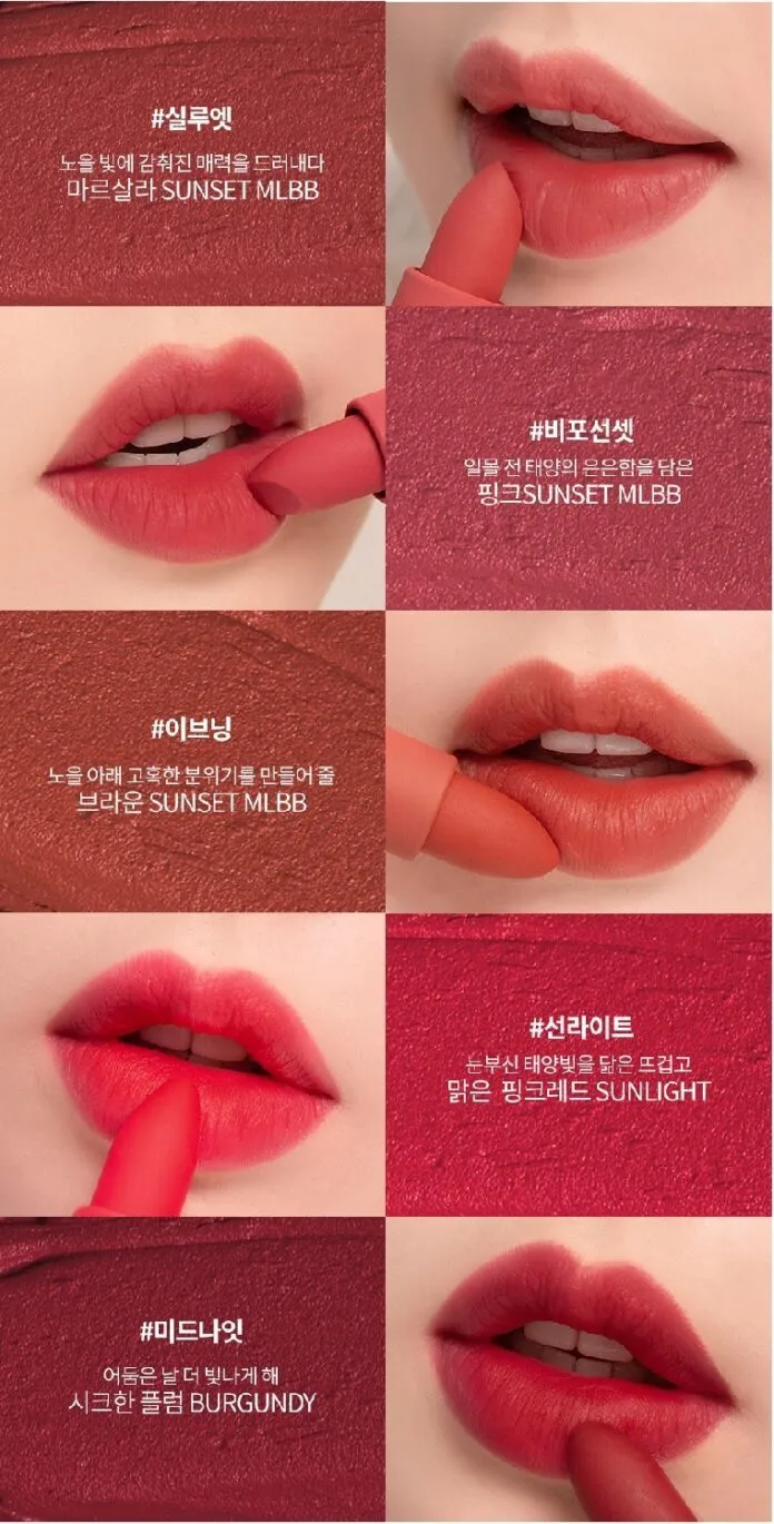 Với chất son lì khi sử dụng lại vô cùng mềm mịn cùng bảng màu vô cùng trẻ trung. Hãy cùng nhau tham khảo bảng màu ngay nhé!