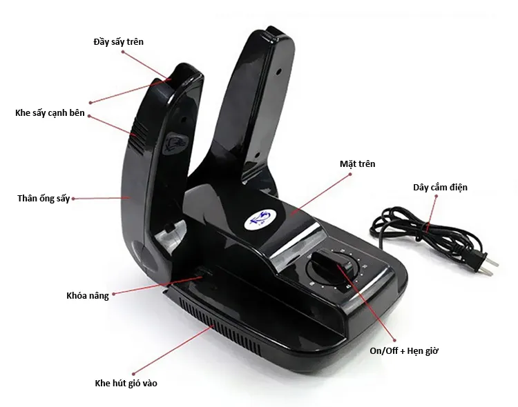 Sở hữu chức năng sấy khô cực nhanh, chiếc máy sấy giày sẽ phát ra tia cực tím diệt khuẩn, giúp đôi giày của bạn luôn khô ráo và còn khử được mùi hôi khó chịu của giày.