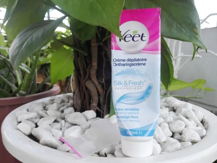 Bao bì và thiết kế của kem tẩy lông Veet Silk & Fresh khá mát mẻ, tươi trẻ và tiện dụng khi kèm cả dụng cụ