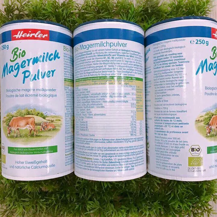 Được sản xuất theo phương pháp hữu cơ hiện đại có chứng nhận hữu cơ Châu Âu, sữa tươi Heirler Bio là loại sữa tươi tách kem nguyên chất dạng bột có giá trị dinh dưỡng cao. Sữa tươi hữu cơ dạng bột Heirler giàu protein, canxi, chất béo cung cấp dưỡng chất đáp ứng nhu cầu thiết yếu hàng ngày cho cơ thể.
