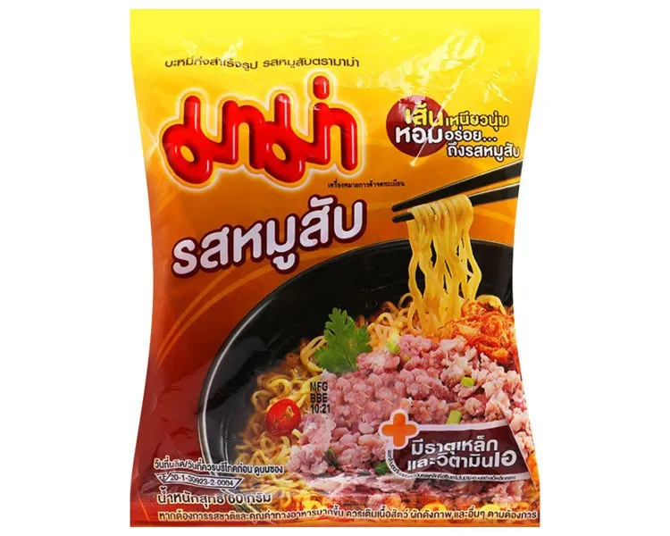 Mì Mama Thịt Heo Bằm 60g, được đóng gói hay đóng cốc là một trong những sản phẩm mì ăn liền Mama được ưa chuộng hiện nay. Mì ăn liền với hương vị thịt heo thơm ngon, kích thích vị giác người ăn. Sản phẩm với hương vị thịt heo thơm ngon hòa quyện cùng mùi hương ấm nóng của nước súp càng làm cho sản phẩm thêm phần hấp dẫn
